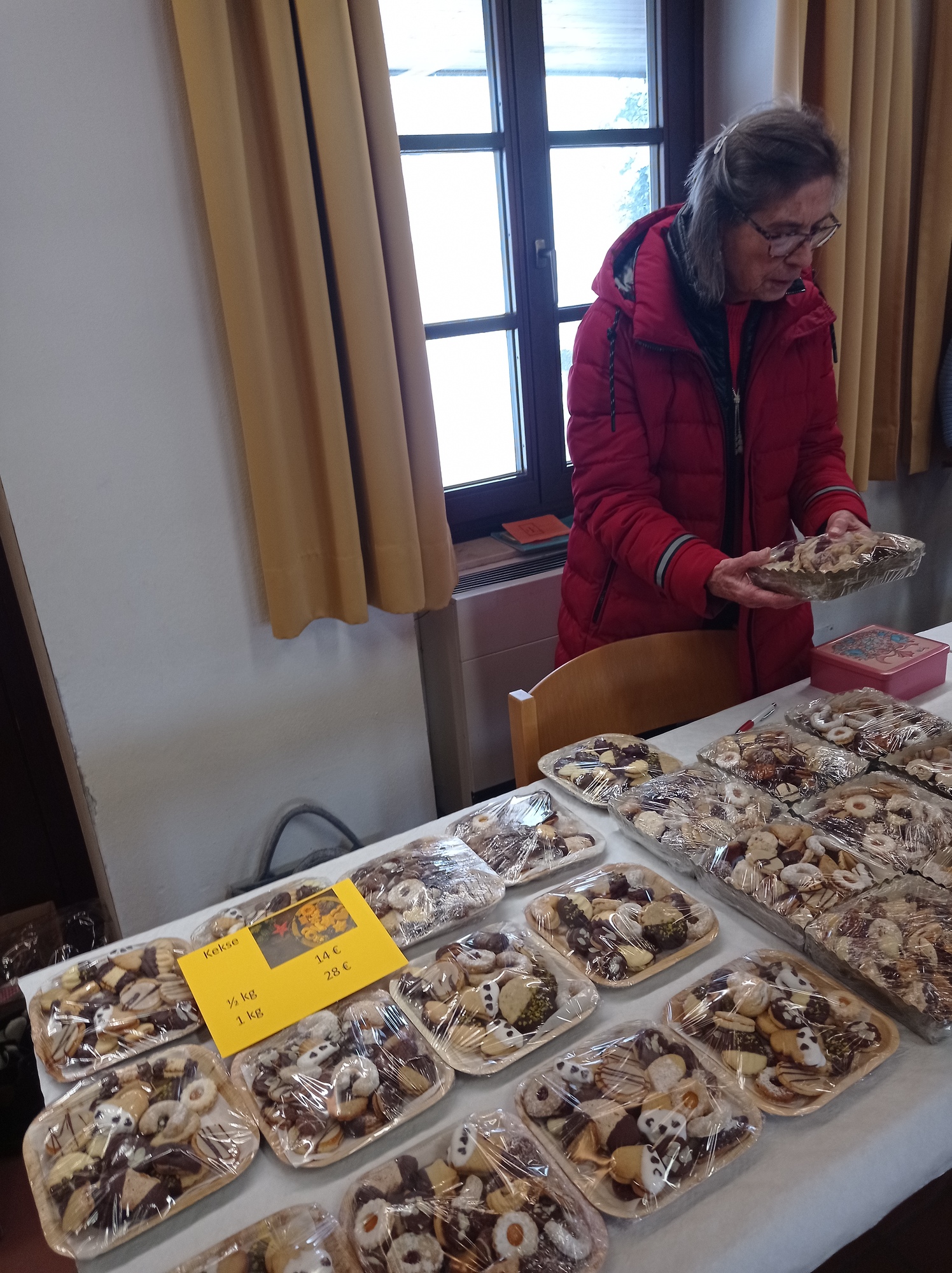Frauen unserer Pfarre haben mehr als vierzehn Tag beim Adventkranzbinden und Kekse back fleissig für den Kathreinmarkt gearbeitet.